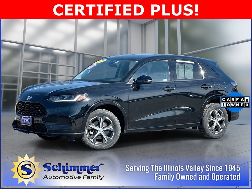 Here's some more details on this Vehicle: Used 2023 Honda HR-V EX-L in stock at Schimmer Ford Lincoln Hyundai in Peru, Illinois. This used HR-V comes in Crystal Black Pearl with Black w/Leather-Trimmed Seats. Stock # H832601 and Vin # 3CZRZ2H75PM702505. 2.0L I4 DOHC 16V i-VTEC CVT